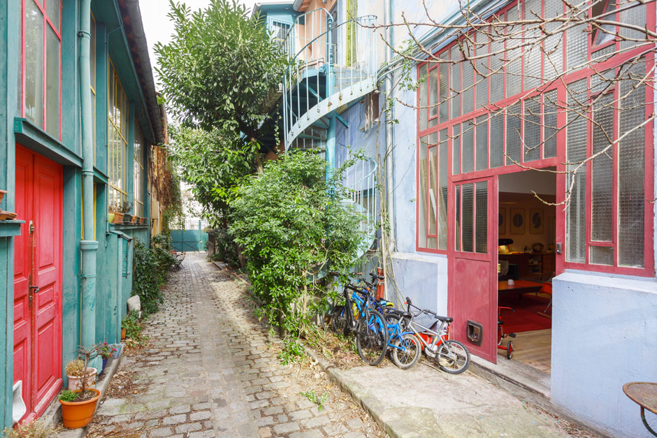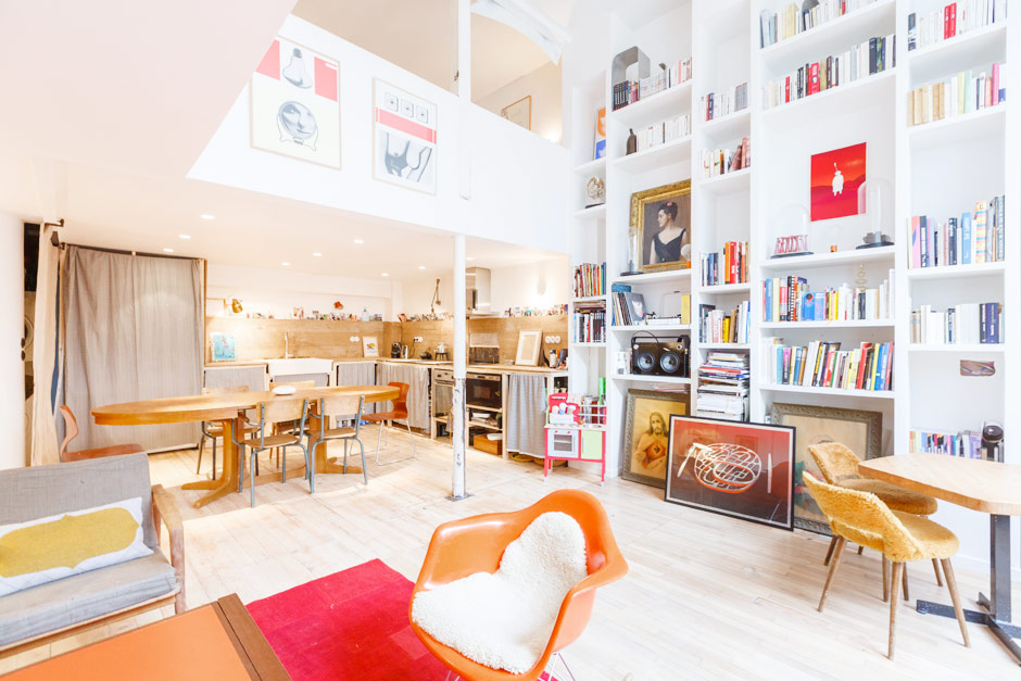 A bright three-bedroom family home in Paris with skylights and floor-to-ceiling bookcases.