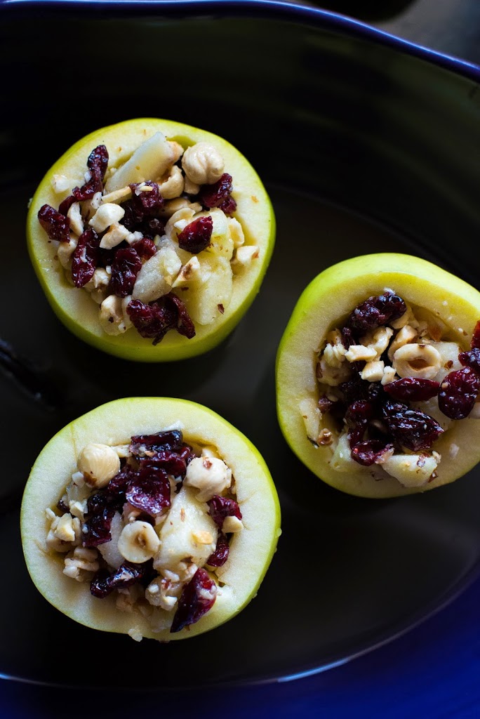 Apple picking season has started, and here in Ontario we are being told that it will be the best season we’ve had in a long time! With temperatures dropping and several family gatherings just around the corner, a sweet apple dessert might be just what you’re looking for. While I like my pies and crisps, I really dislike peeling apples, so preparing something without that pesky task is a winner in my books. In addition, this combination of hazelnuts, cranberries and a touch of sugar is a lighter (and less guilty) pleasure. Enjoy!