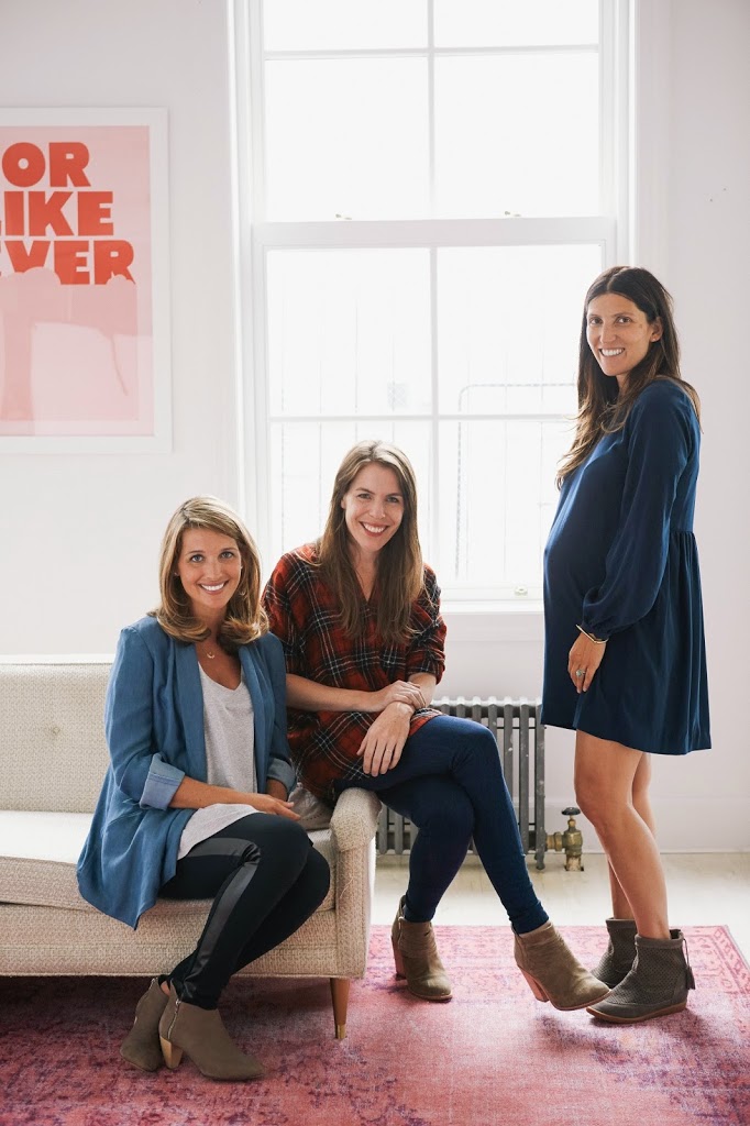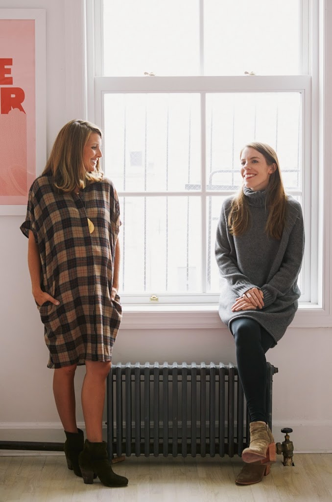 And here we are with my friend and Hatch founder, Ariane, who is also seven months pregnant! Michelle is wearing their blazer, white tee and tuxedo leggings; I’m wearing this plaid shirt with denim leggings, and Ariane is wearing the darling dress. Thanks so much for letting us come by, Ariane! It was a fun afternoon playing dress up:)