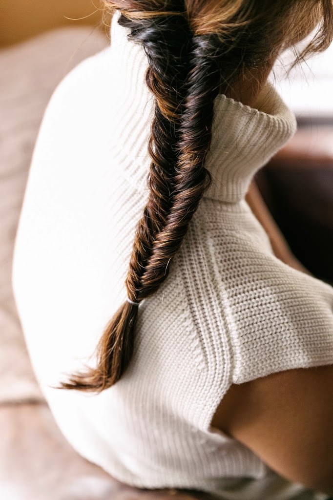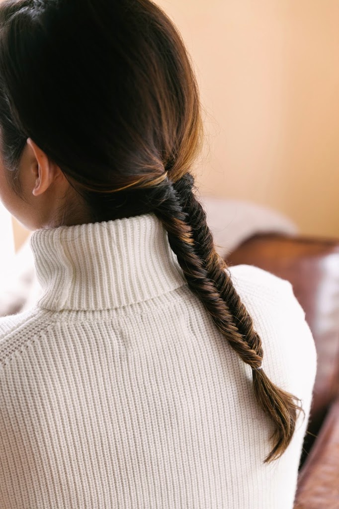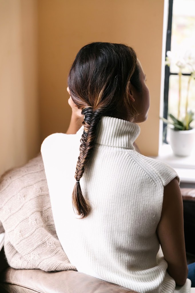 Everlane just came out with three chunky knit sweaters, and the wool is super soft—not itchy the way some wools can be. (I have the crewneck and have been wearing it non-stop!) Inspired by fall, we’ve paired each of the three styles with a romantic braid…