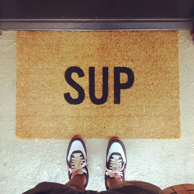 A welcome mat, $50, that will make his guests smile.