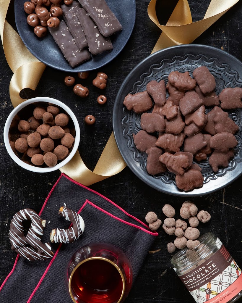 Everything’s better covered with chocolate (right?), so the Chocolate-Covered Deliciousness taster, $65, makes a slam-dunk gift for chocolate addicts—with chocolate-covered pretzels, graham crackers, animal crackers, hazelnuts, even Cheerios!