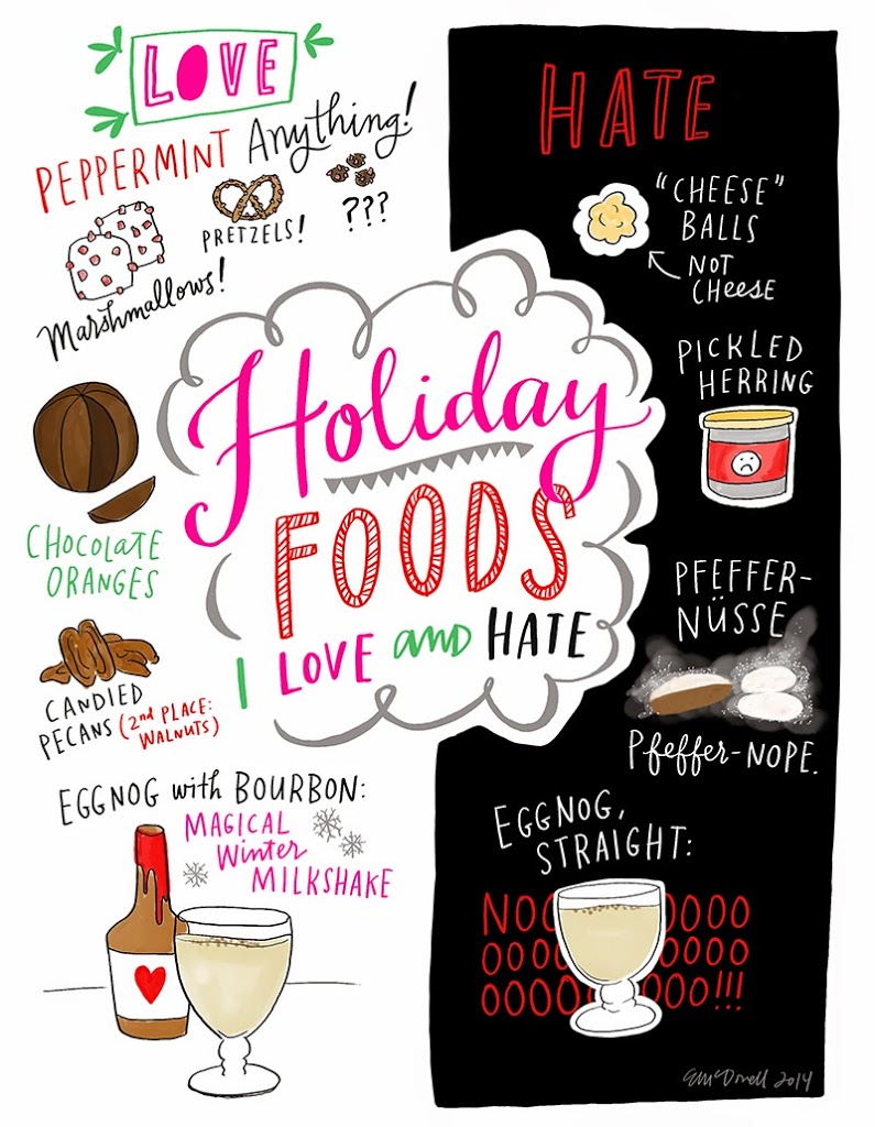 What are your favorite and least favorite holiday foods? I will eat an entire pumpkin pie with extra nutmeg, and my mom used to put ripe tangerines in the bottom of our stockings. On the flip, my English aunt would serve traditional mince pies, and I still shudder. What about you? What are your traditions?