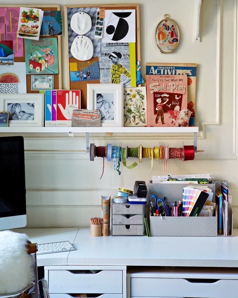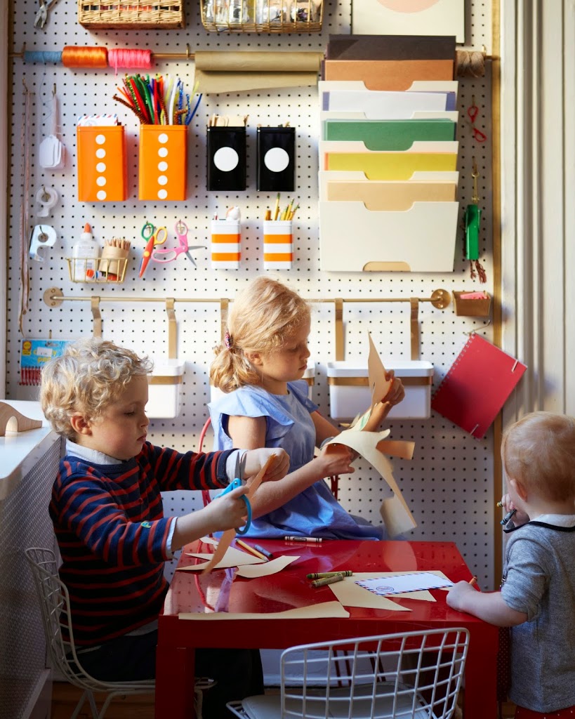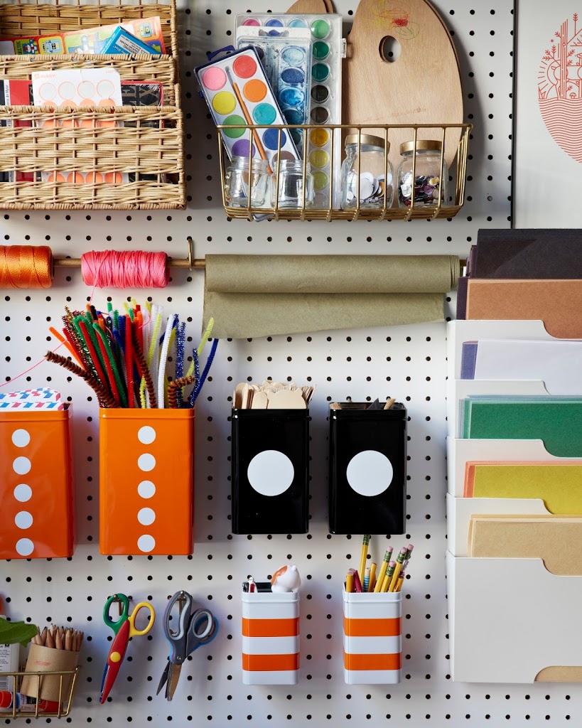 On building a craft wall: The craft area was another idea of mine that was constructed by Brian. I’d been thinking about making it for a while, and one day we were driving past Home Depot and I was like, “Let’s go get stuff!” I convinced him we didn’t need to measure first, and by some miracle, we got the exact right size of peg board. The craft area has been a lifesaver, because the kids can access it themselves and there’s an art project going on at all hours of the day. [Ed. note: If you’d like to see more, check out a step-by-step tutorial here.]