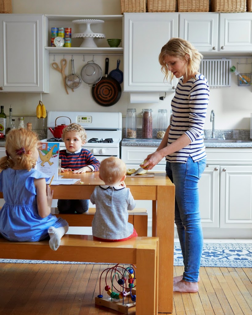 On family rituals: When the kids get home from school, the kitchen is our gathering place. Ivy is always doing some sort of art project; Oliver will build train tracks around the table. Everything takes place in the kitchen, always. At dinnertime, we like to talk about our day. We’ve started a ritual where the kids will each share one happy thing, one sad thing, and one thing that made them laugh during the day. Sometimes if they’re tired, I’ll start out by sharing those things about my day, too. It always blows their mind that I do things while they’re not around. “You rode the subway today?!”