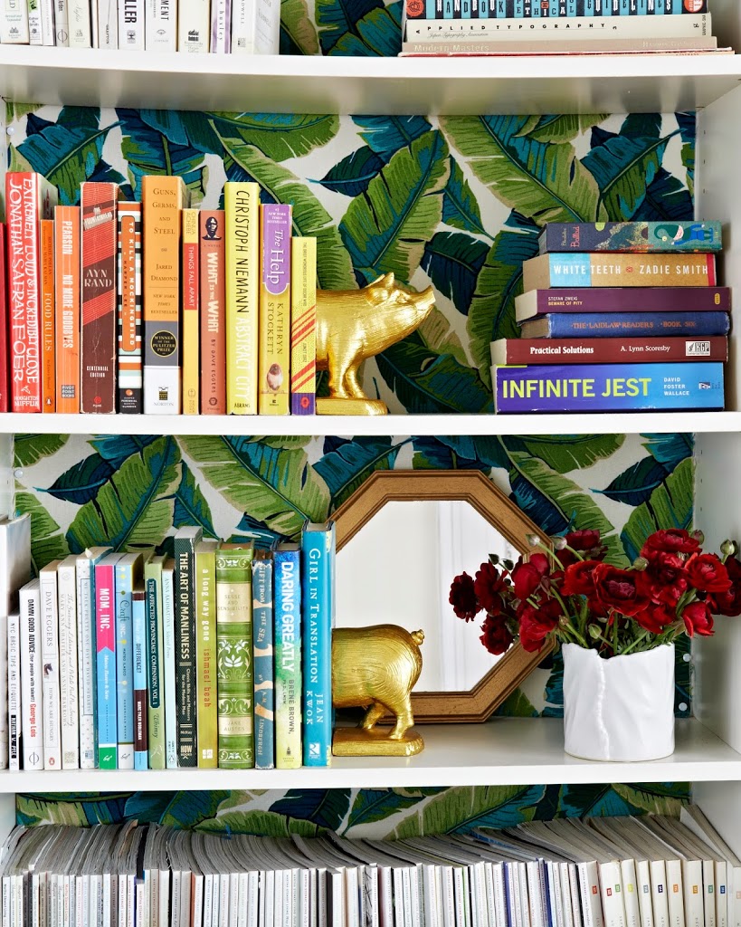 On customizing bookshelves: These bookshelves are from Ikea, and I just used thumbtacks to affix fabric to the back panel. I’m sure there was a better way to do it, but that’s what worked for me! I find that if I don’t strike while the iron is hot, I never get around to doing a project. If I’m feeling inspired, I just go for it with whatever I have on hand.