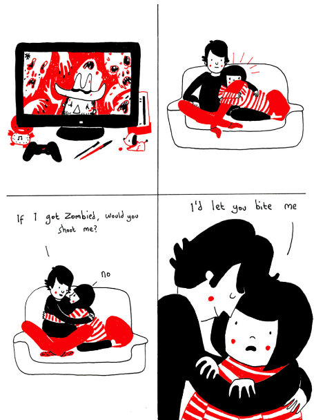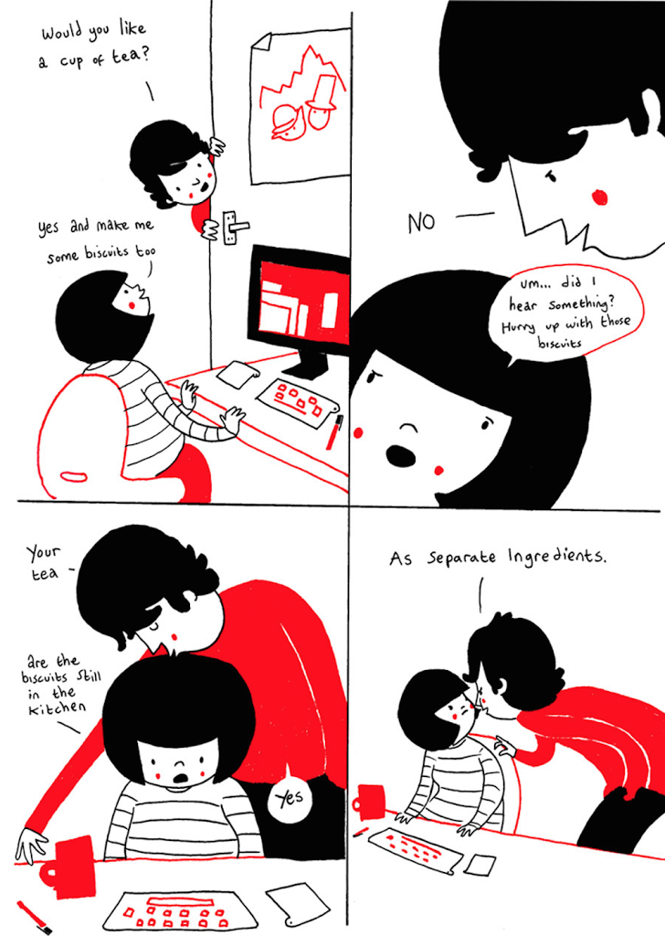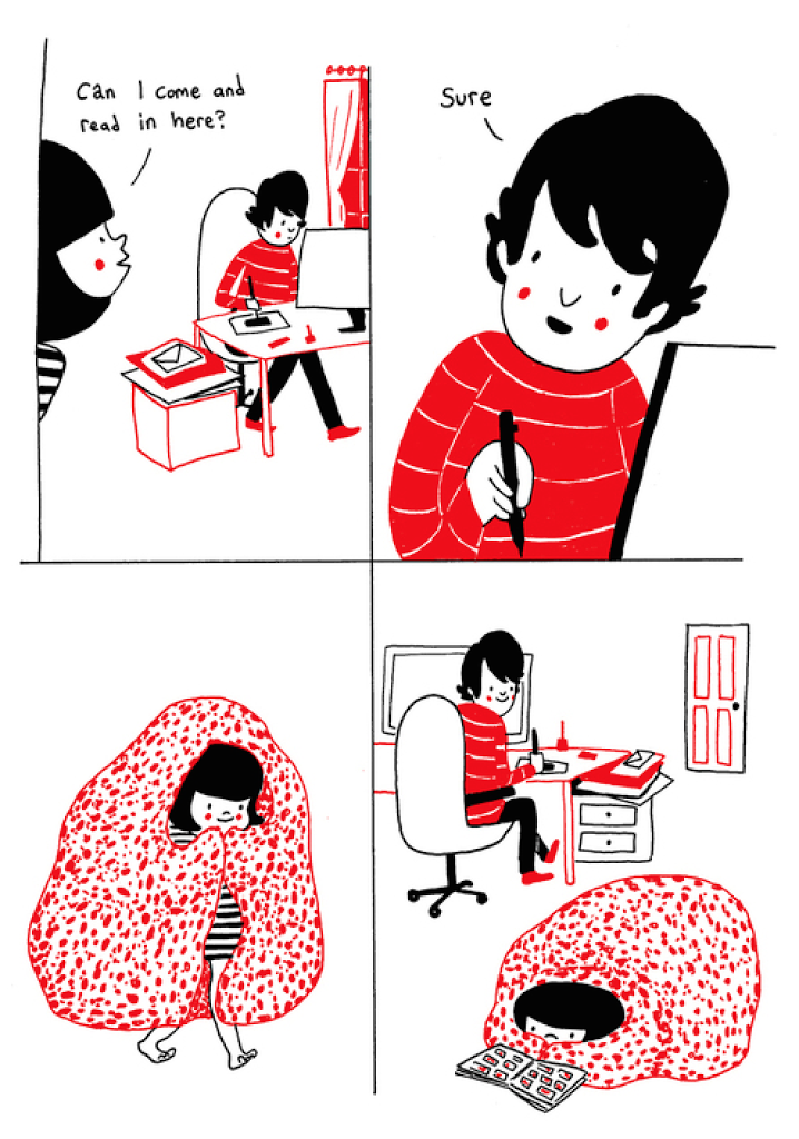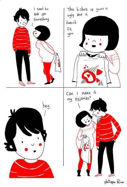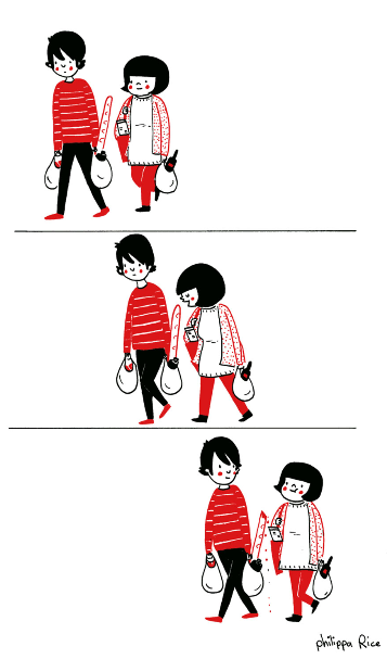 Have you seen the graphic novel Soppy? The book is the real-life love story of comic artist Philippa Rice and her boyfriend, cartoonist Luke Pearson—as they fall in love and move in together. She captures all those little moments (grocery shopping, assembling bookshelves, sleeping side-by-side) that can so often go unnoticed. Take a look…