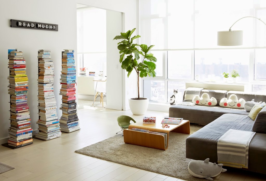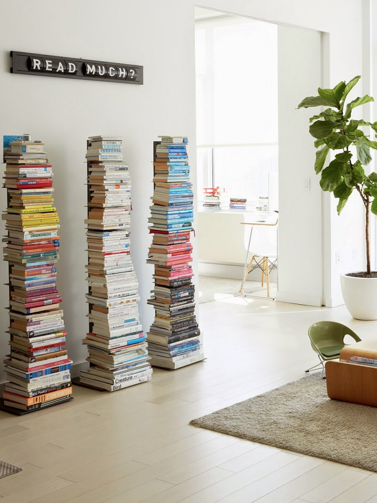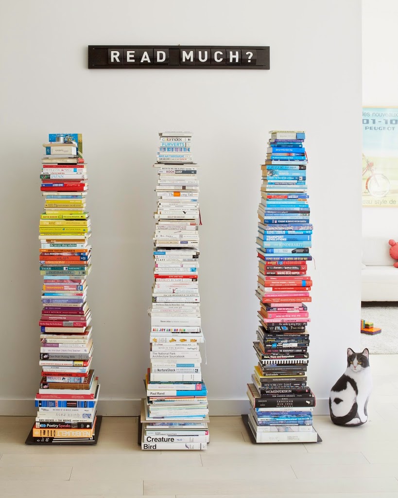 Vertical bookshelves: CB2. Interchangeable letters sign: Goodwin & Goodwin.