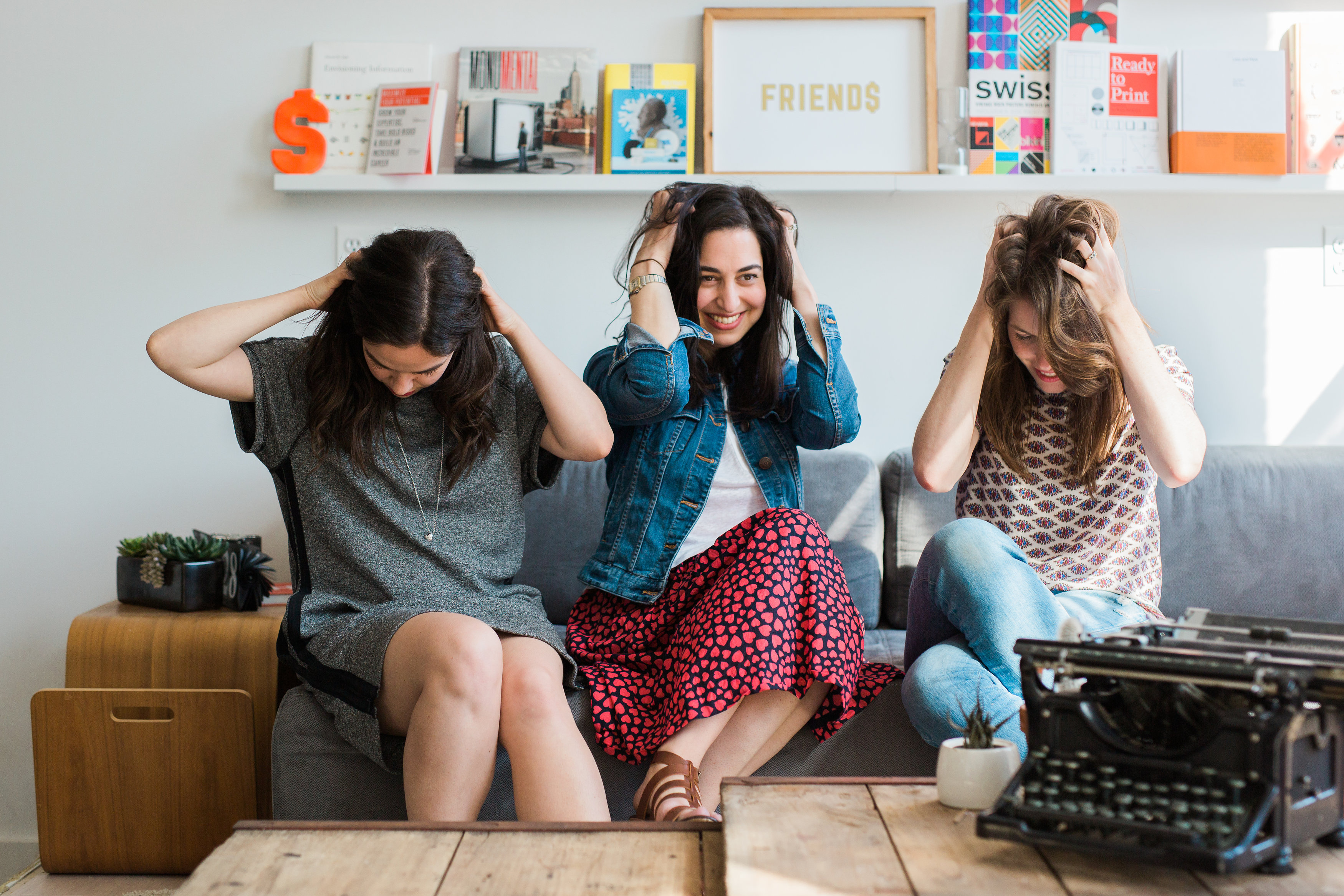 Fixing our hair. (Busted!)