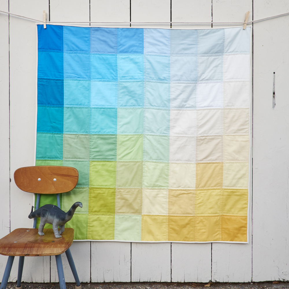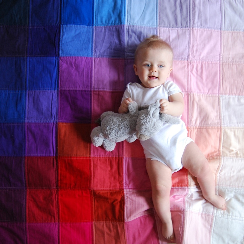 We have a mini quilt folded over Anton’s crib, and whenever I walk into his room, I’m momentarily struck by how pretty it is. Ours was made by the workshop Hopewell, which has since closed, but these heirloom quilts from a new shop, One of One, have that same warm, graphic feel. Each is handmade by Kate Johnson, a mother of two, with 64 different colors.