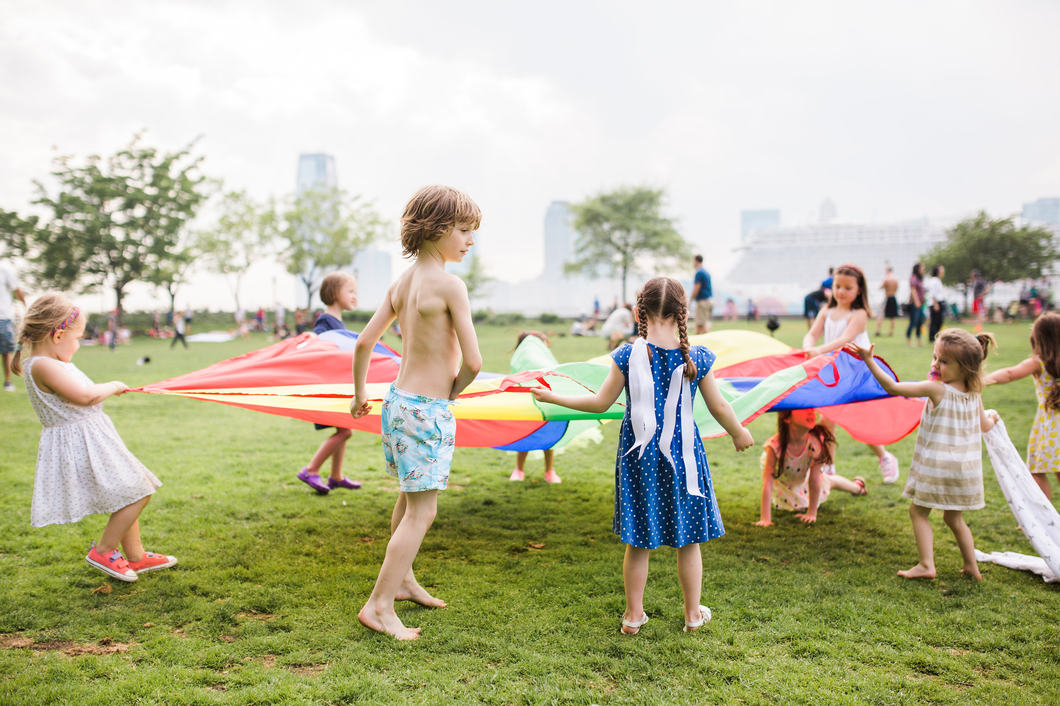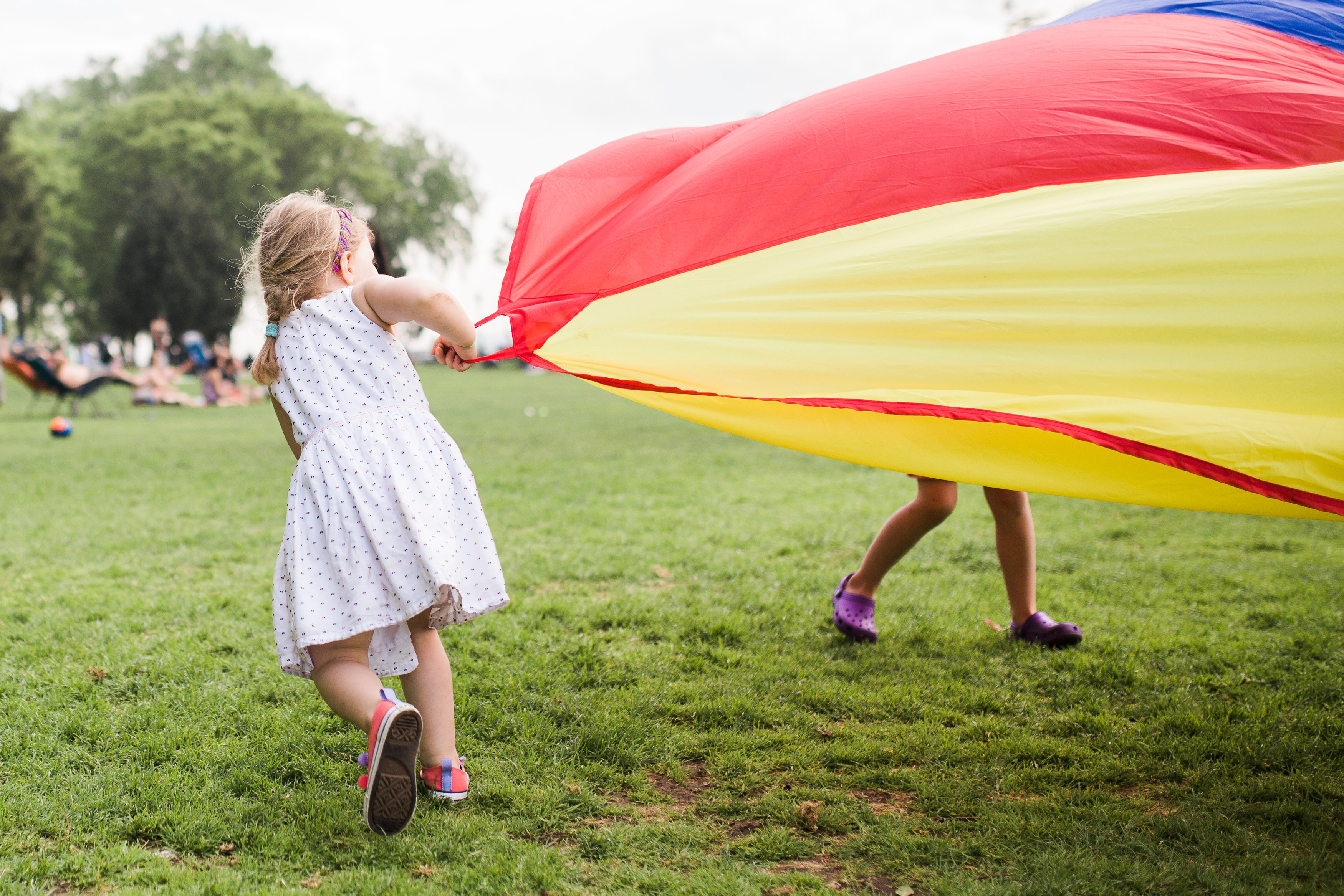 We brought along a few things for the kids to play with, as always — like, a parachute, a frisbee and bubbles. My friend Michelle also brought this super soaker, which was the instant hit of the party.