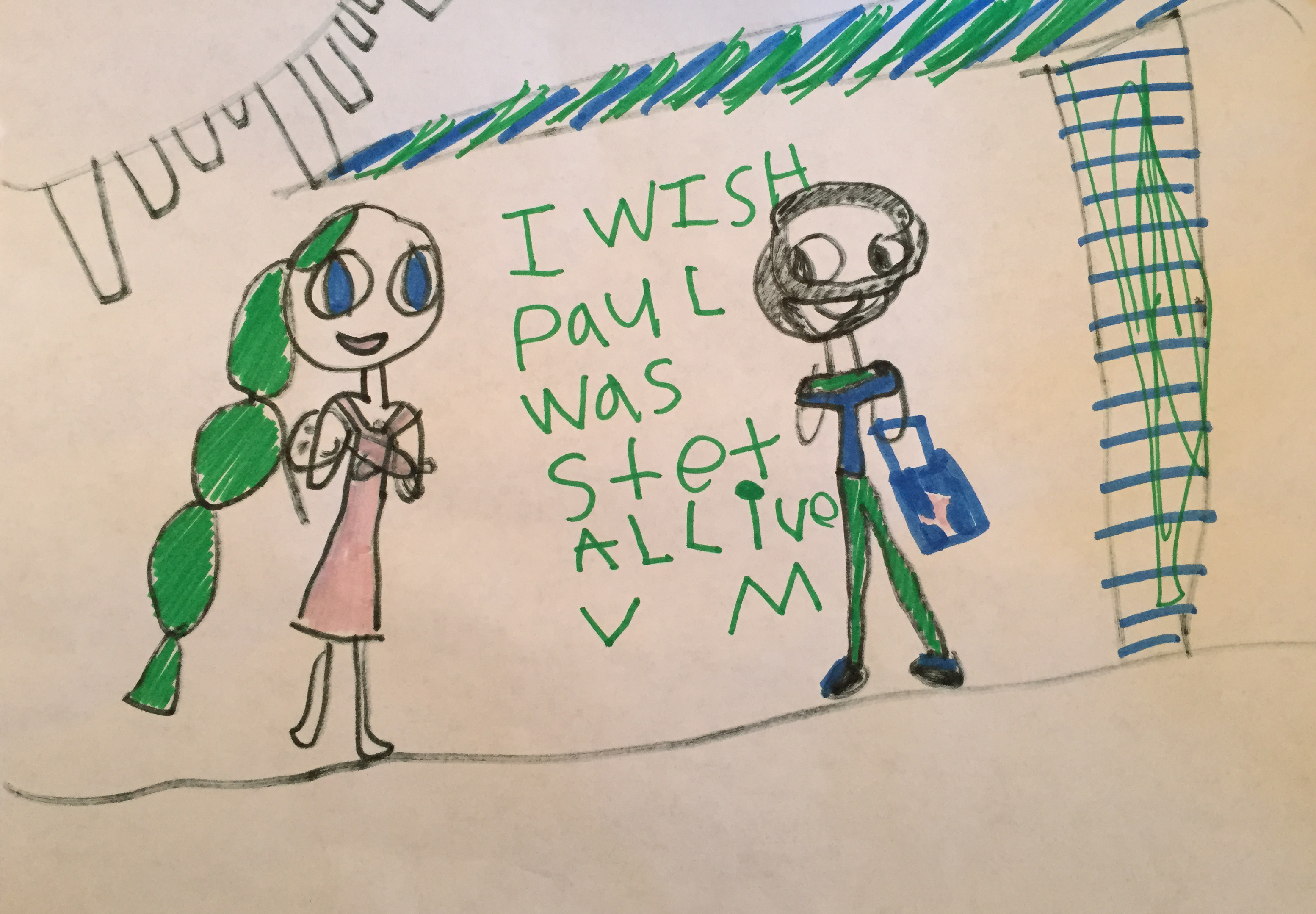 A drawing from a friend’s daughter. “VM” stands for “very much.”