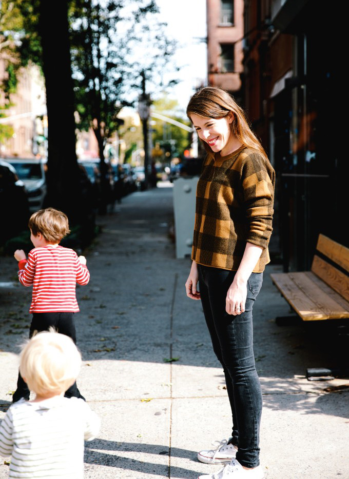 (Photos by Olivia Rae James. Thanks, Olivia! My sweater is from Madewell, plus my trusty Converse. Anton is wearing Mabo leggings and an American Apparel shirt, and Toby is wearing a Polarn o Pyret shirt and American Apparel leggings.)