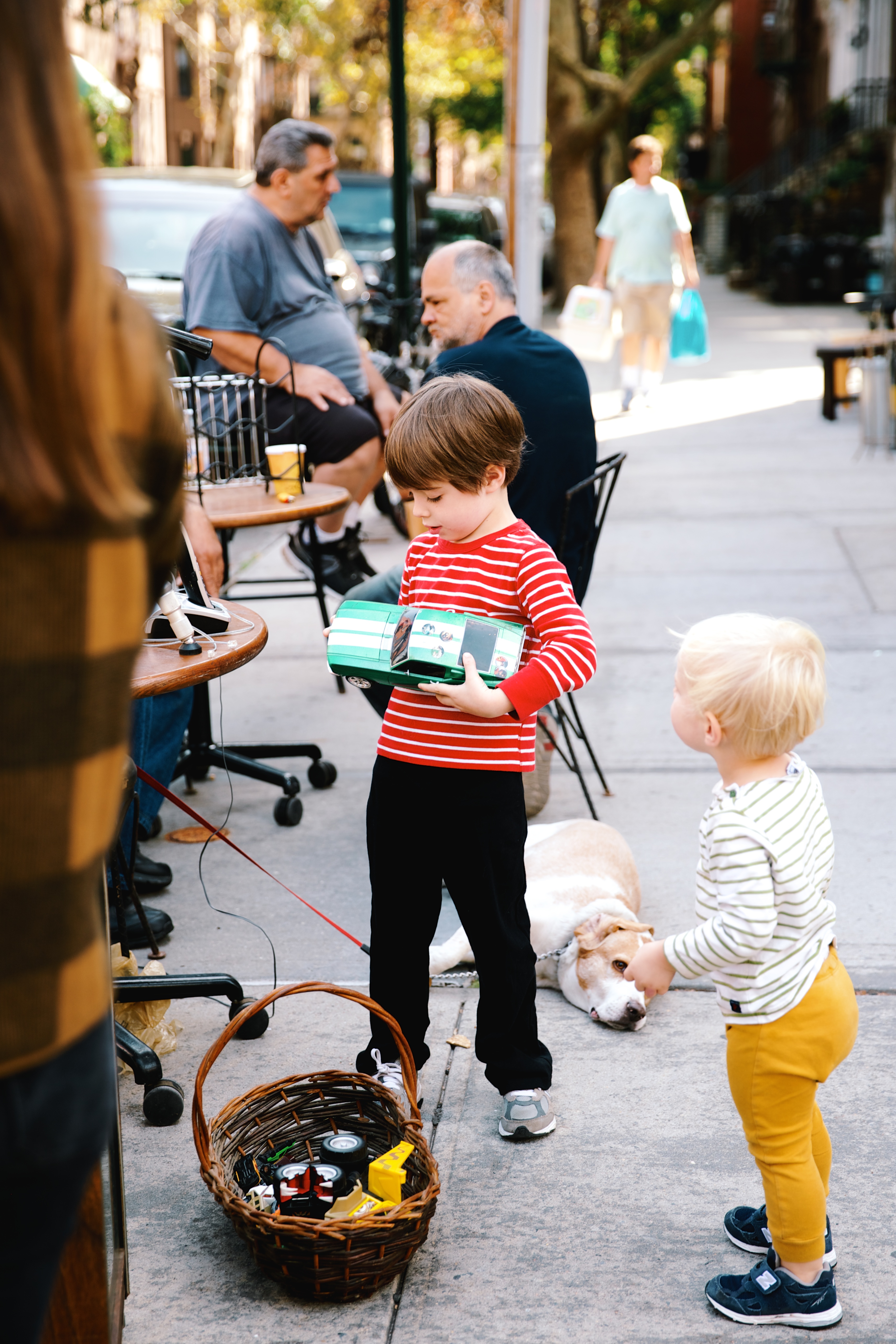 Finally, on our way home, we passed a stoop sale, where the boys tested out the toy cars.