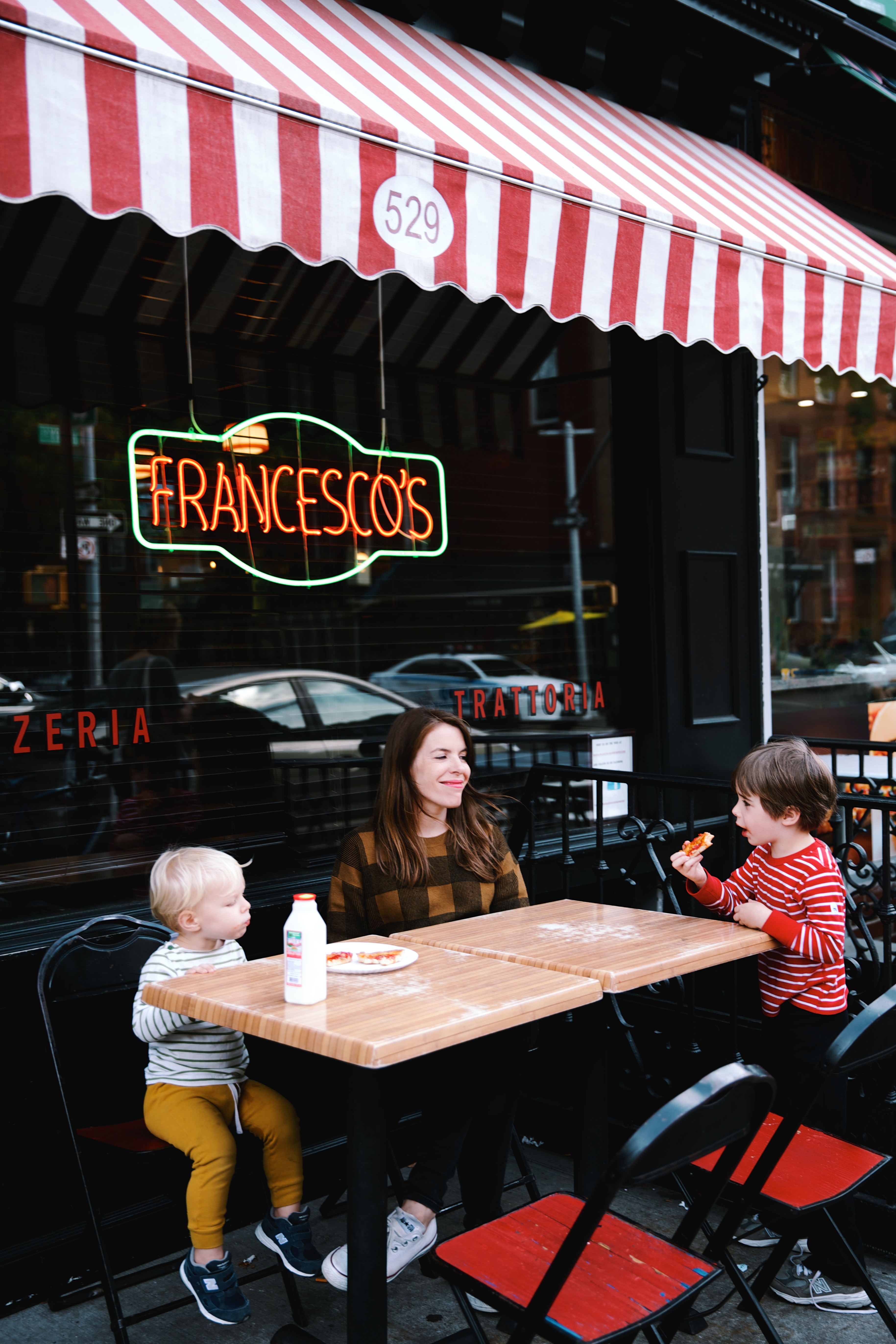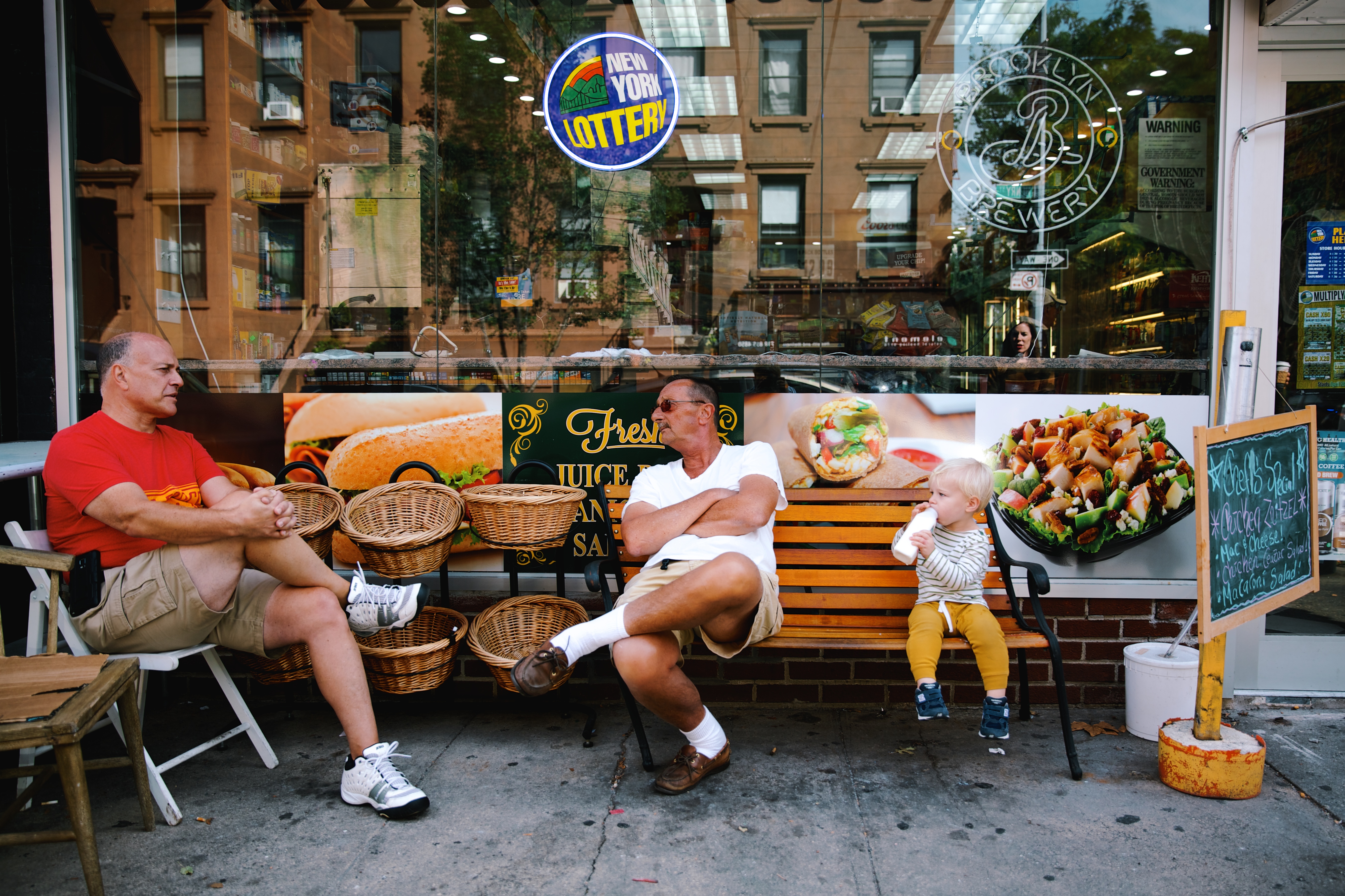 Then we stopped for a sip of milk at the deli across the street. We’ve always said that Anton resembles an old man (since the day he was born!) and here he fits right in, straight chilling with his cohorts.