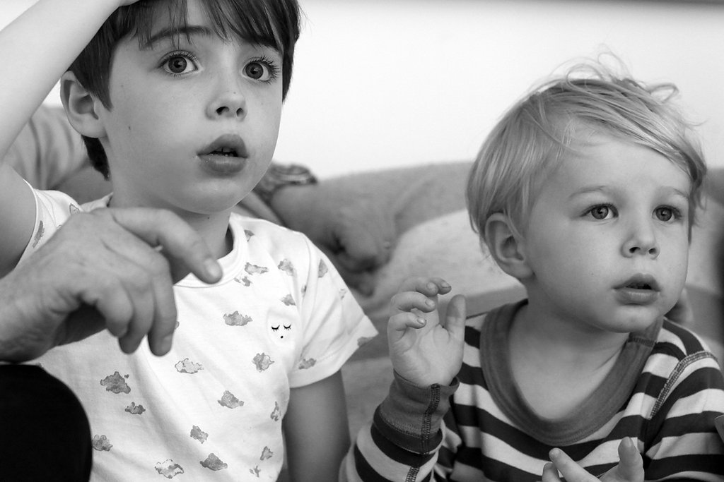 Six-year-old Toby has always been fascinated by stories of our childhoods back in “the olden days,” and now that Anton is almost three, he loves to ask about how everyone in our family is related. (Recently, he hugged my mom’s leg and sighed reverently, “You’re Mommy’s mommy.”) So, with the help of Legacybox, we thought we’d surprise the boys on a recent movie night with a slideshow of family photos they’d never seen…