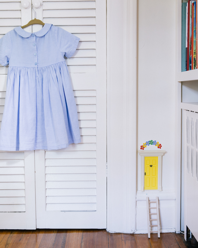 On fairy doors: I bought Veda a fairy door as a gift. It doesn’t open, but sometimes at night a fairy (I named her Ivy Oakbrier!) will “come through” the door and leave behind handwritten notes, trinkets or tiny glitter footprints. In return, Veda will put out pictures, notes and elaborate set-ups for the fairy to play in. It’s fun to see her sense of wonderment, and it’s also a great learning tool. If her room hasn’t been cleaned up for days in a row, the fairy will gently mention that she would have liked to have visited but couldn’t get past the mess!