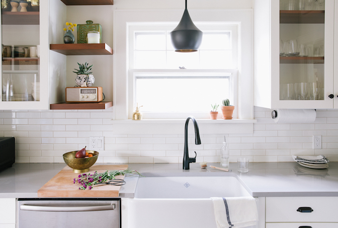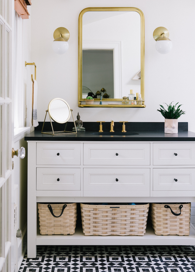 On favorite rooms: Is it weird to say that my bathroom is my favorite room in the house? Until recently, it was entirely mauve-brown, the sink was a hexagon and everything else was straight out of the 80s. We weren’t sure when we’d ever redo it. Then, like a sign from above, a huge leak sprung in there and repairing it was way less practical than starting over. (I swear I didn’t create the leak.)