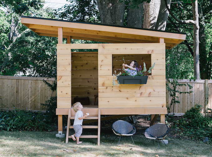 On building a play house: We were debating between a swing set and play house, and the house won because it would be fun for the kids for longer (and one day could become a chicken coop). I sketched out a design inspired by things I’d seen on Pinterest and Instagram, and my dad, who’s a contractor, gave me advice. At one point, he said, “Why don’t I come up and we build it?” and then arrived from Florida. It took 2.5 days of intense labor, but was the most satisfying thing I’ve done in years. It was really special to work alongside my dad in his element. Plus, using a nail gun feels amazing. We all like to hang out in it now — sometimes I find my husband hiding in there with his morning coffee before work.