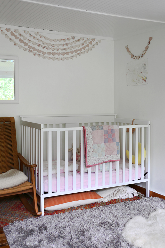On layering rugs: The mishmash of layered rugs piled in Cleo’s room are there out of necessity. It’s a hand-built house and the squeakiest house in the world. You have to do ninja moves to get out of the room when she’s asleep. There are a couple boards near the door that I could never get past without waking her up!