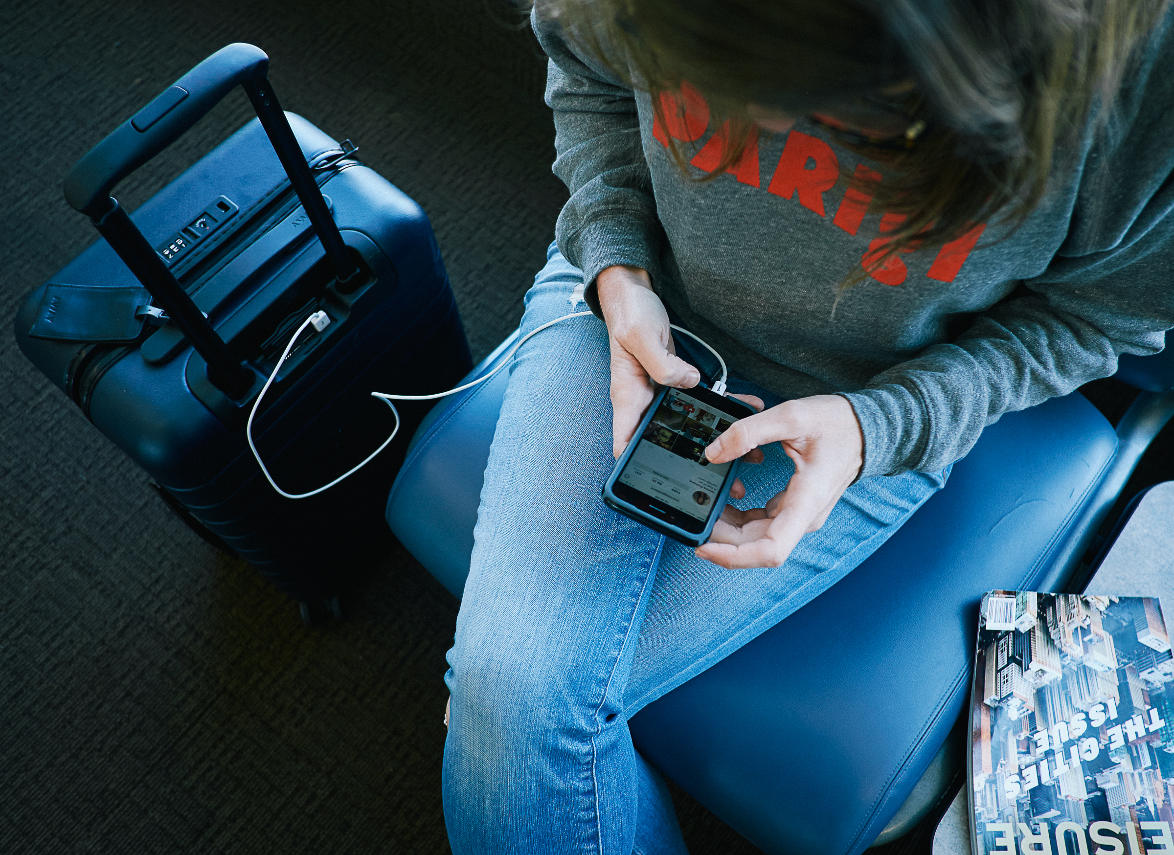 First off, I brought an Away carry-on bag. Their luggage has gotten so much buzz, and I was psyched to try one out. The carry-on suitcase (mine is navy blue) has a built-in phone charger. How awesome is that? Such a lifesaver.