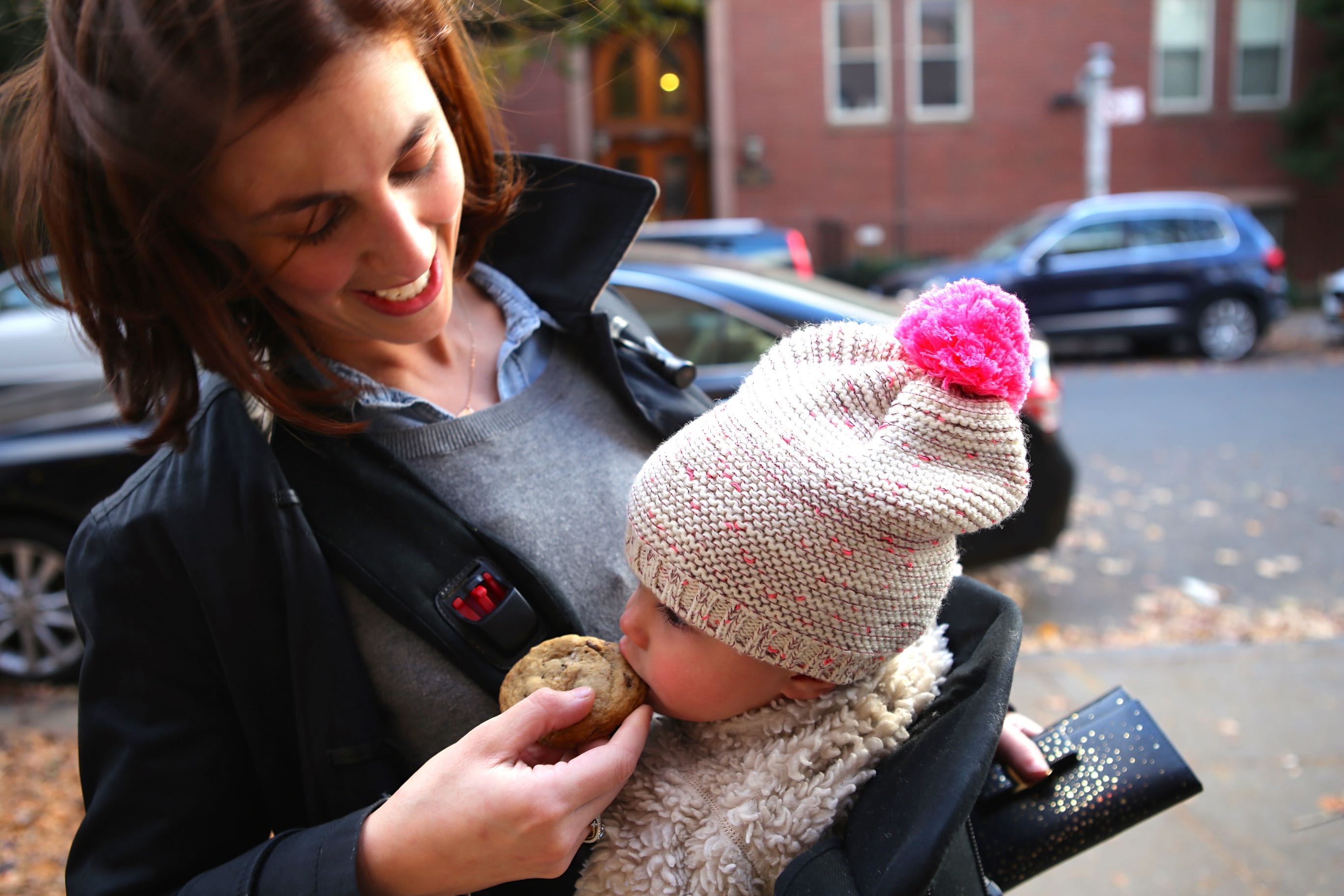 “She’s having her very first bite of cookie,” this mother told me. “This seems like a good time to do that.”