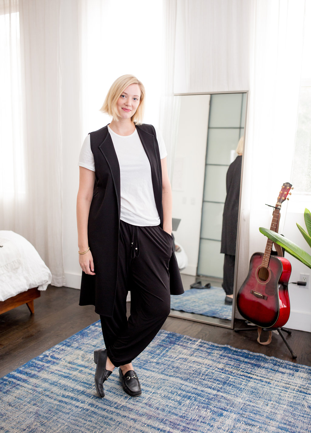 “It took me a long time to realize that skinny jeans weren’t great for my body type. But then a whole new pant world opened up for me: Omg, trousers! Culottes! I’m riding that wave right now. When pants are relaxed, I feel relaxed. I’m really digging these wide-leg trousers. The tucking-in of the sweater is also a new phenomenon for me. I didn’t know you could do that and still look fashionable. But it’s totally a thing! I first saw it on a girl at a dinner party, and she had tucked a just a tiny part of her sweater, like a thumb’s worth, into silk pants.”