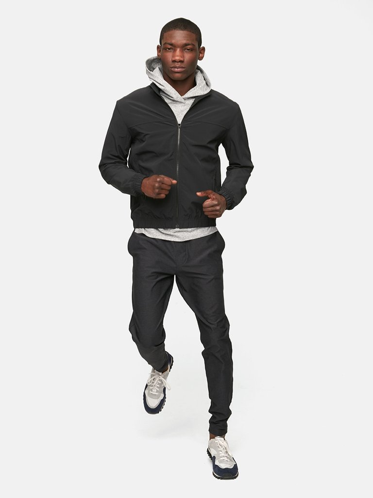 A jacket, $125, that’s light as air, for all his walking/running/biking needs. (With headphone exits, naturally.)