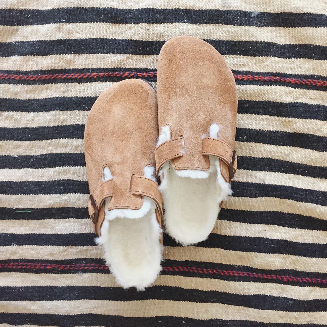 Splurge-worthy shearling-lined Birkenstocks, $165, so she can sport her laid-back style all year.