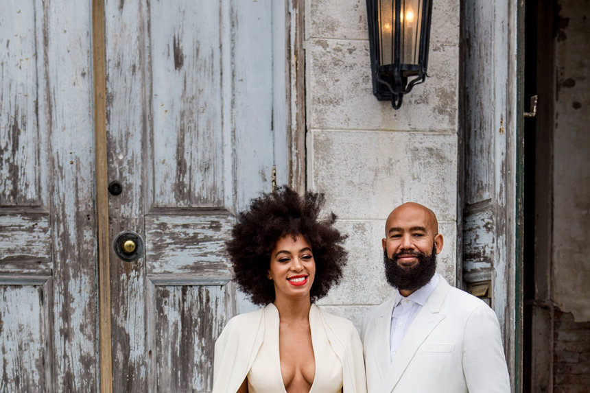 As for my wedding-day look, I think I’ll opt out of the veil and go for Veronica Lake curls with a modern edge, and makeup that’s just an amplified version of what I wear every day. I love a bold red lip like Solange’s (and the other gorgeous wedding looks below), but I’m thinking something more delicate. A makeup artist once told me her golden rule is that the bride should wear her everyday lipstick so her signature look shines through. Despite her intense wedding prep, Emily Weiss chose this route and wore her subtle go-to lip color (she loves the Cake shade) and I’ll most likely go with mine.