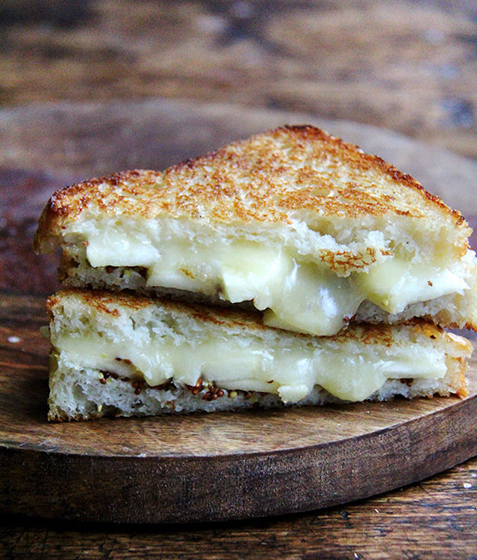 This apple-and-cheddar sandwich adapted from Jenny Rosenstrach’s How to Celebrate Everything has become a favorite no-fuss dinner. I love that I can prepare it two ways: For my husband and me, as written, the bread slicked with nose-tingling mustard, griddled until bronzy, the cheese gently oozing, the apples soft and warm. For my children, I keep it raw: fresh, untoasted bread spread with florescent yellow mustard layered with peeled apples and deli cheese. Everyone is happy.
