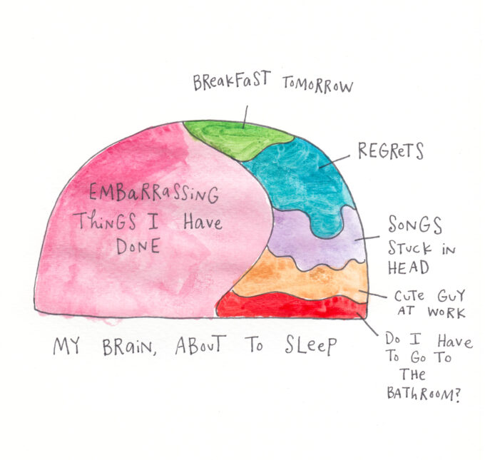 How very clever and funny!! I don’t even think that I actually want to ponder what is going on in MY brain at night before bed!! Take these thoughts and multiply them by at least 100!!!