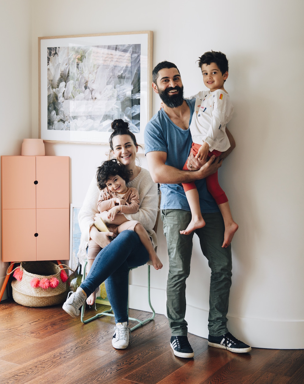Courtney Kirby and her husband, Ali, live in Melbourne, Australia with their adorable boys, Noah, 4, and Safi, 2. The family’s space is full of vibrant crystals and essential oils (she owns a wellness shop) and fresh produce (he owns an organic fruit and vegetable shop) — not to mention gorgeous affordable art. Take a peek inside…