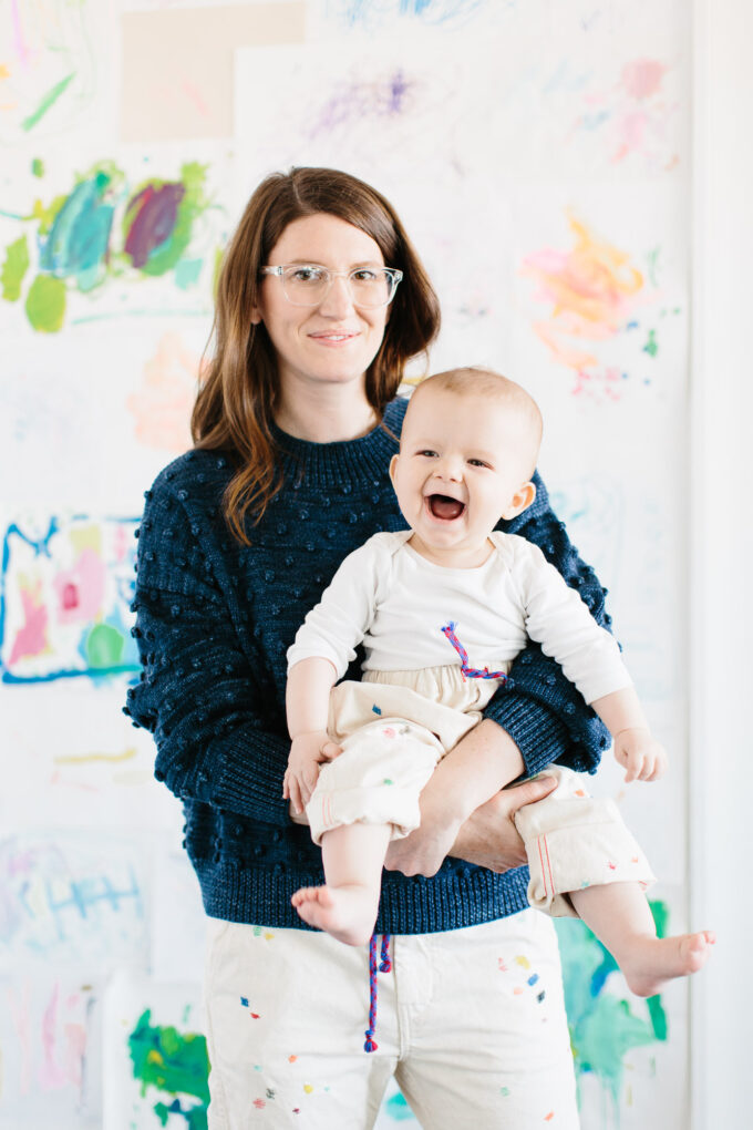 “Even as a textile designer, I tend to wear one pattern at a time, versus mixing them. A little goes a long way, right? The shops Bird and Mille carry great textiles; the main model at Mille is a little older and wears the clothes so naturally. I follow small brands on Instagram, too, which is how I learned that illustrator Leah Goren had re-released her knit sweater that I’d been eyeing for over a year. And I always wear glasses. Five years ago, everything suddenly got blurry, especially at night. It got embarrassing, where I couldn’t see who I was talking to. Clear glasses felt like a softer step from not wearing glasses.”