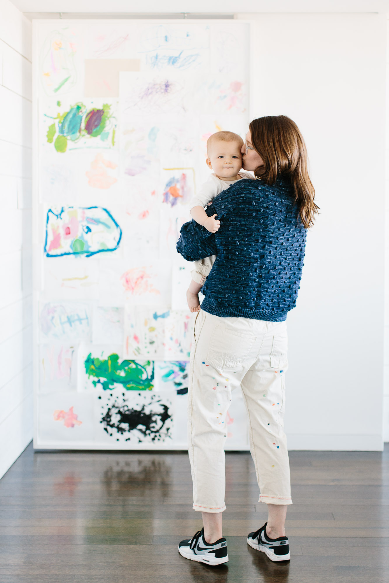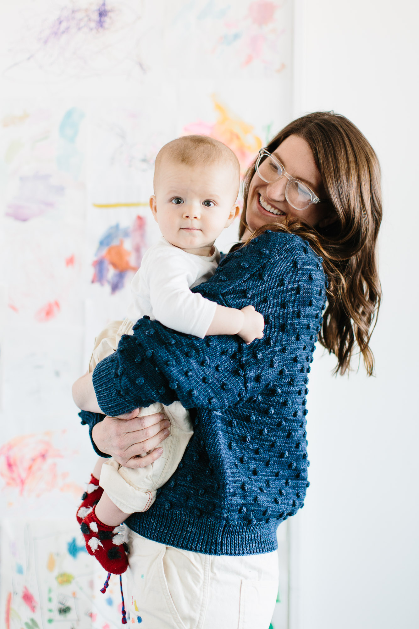 “With a new baby, I wear tops that he’ll feel good nuzzling into and that can withstand a little drool. James is such a sweet, chill guy; I’m obsessed with his breath. This popcorn sweater is actually from the children’s label Misha & Puff. My daughter Louise was given one years ago, and I always wished it were mine. So, when I saw an adult version on sale, I couldn’t resist. I’ve worn it every third day since! It’s the most comfortable thing I own.”