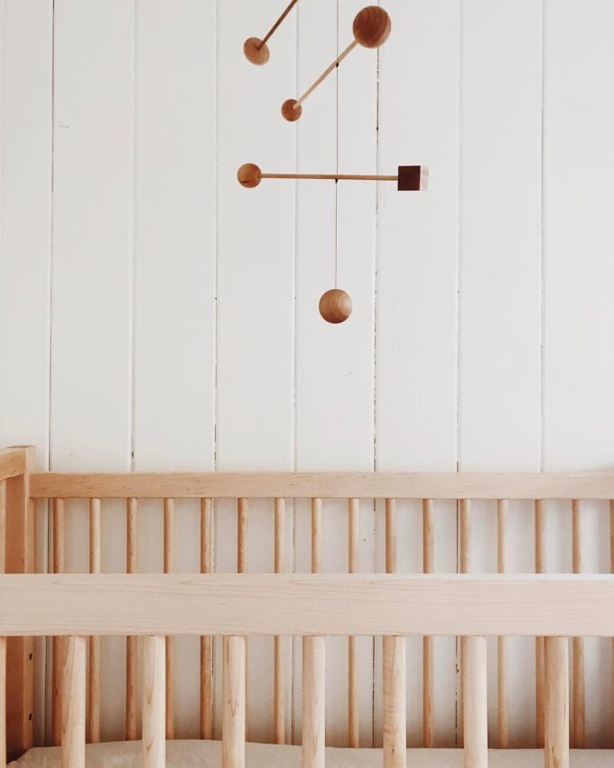 How pretty and mesmerizing is a mobile hung up in a nursery? These days, we’re especially loving sculptural wood or brass versions. They would look just as great displayed as a piece of art in a master bedroom or even a living room. Here are five cool ones: birds, geometric, molecules, bears and circular.
