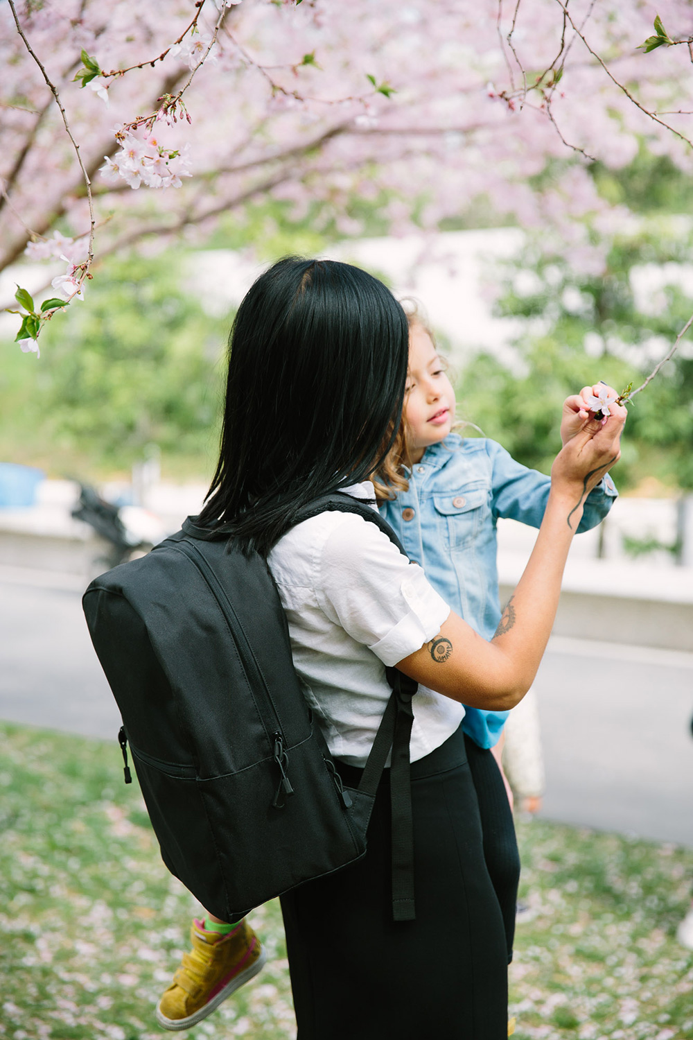 What kinds of family outings do you like? In the spirit of traveling with kids, we invited two friends — Kavi Ahuja Moltz and Lisa Mayock — on a field trip to the Brooklyn Botanic Garden, and we brought along beautiful bags from Lo & Sons. Here’s how they wore them…