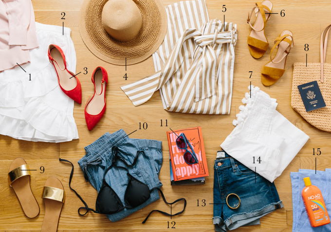Are you planning any trips for this summer? We’ve been brainstorming a family vacation, and the planning often reminds me of this funny quote: “A vacation is like love — anticipated with pleasure, experienced with discomfort, and remembered with nostalgia.” J. Crew just launched their summer collection, which is full of pretty pieces. Here’s what I’d pack for a sunny trip…