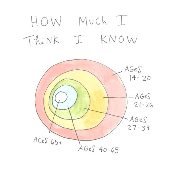 When my kids were at certain ages, they amazed with their surety about all things. For years I’d say, “It must be a marvelous thing to be 12 (or 14, 16…and so forth) and know absolutely everything!”