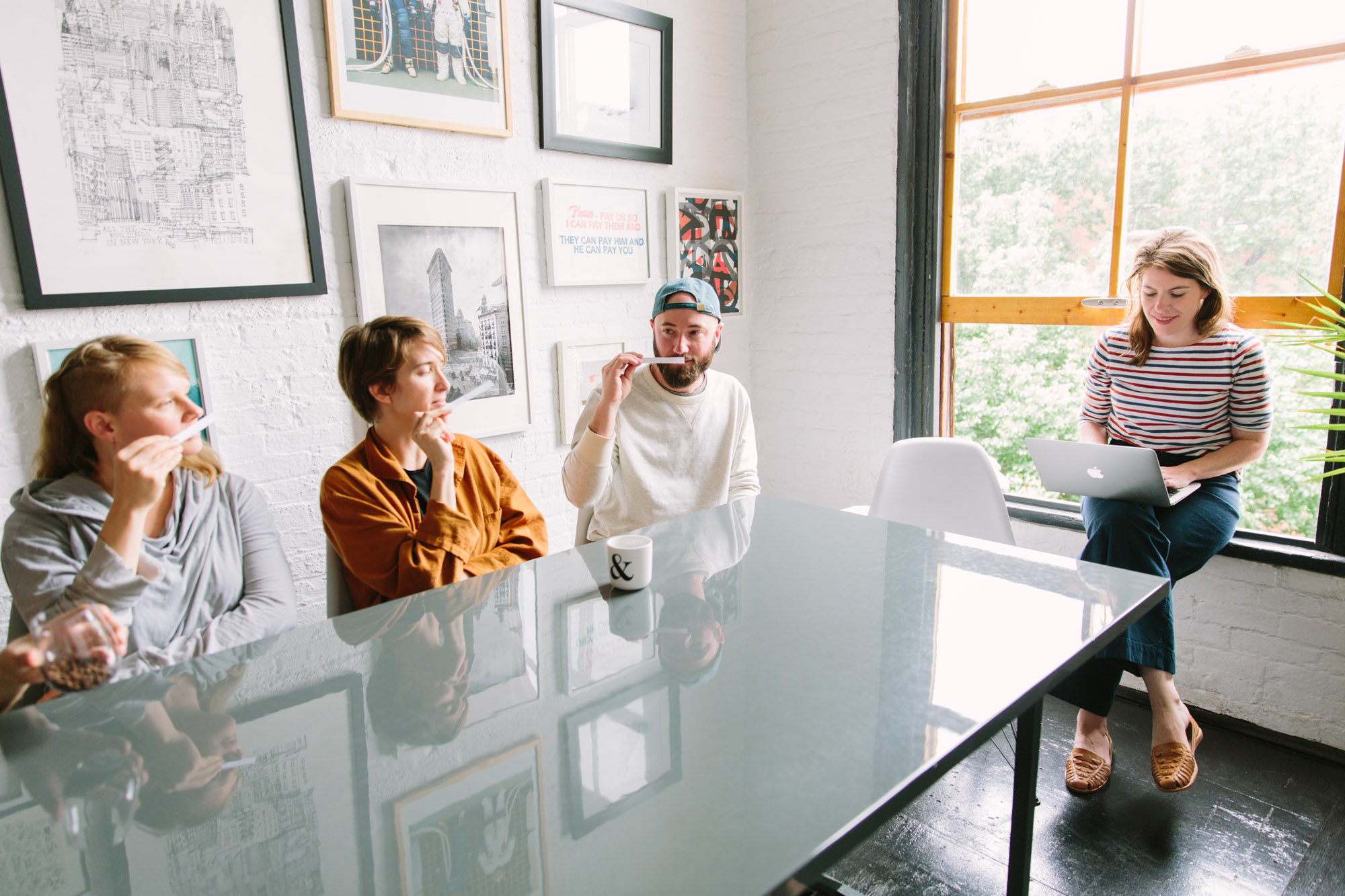 (Photos by Christine Han for Cup of Jo at Friends Work Here. Thank you so much to our perfume testers: Tory Williams, Ben Wagner, Christine Sirois, Paul Jun, Wesley Verhoeve, Hayley Nichols, Amy Fuller, Jeff Beil, Hans Hendley and David Paul O’Brien.)