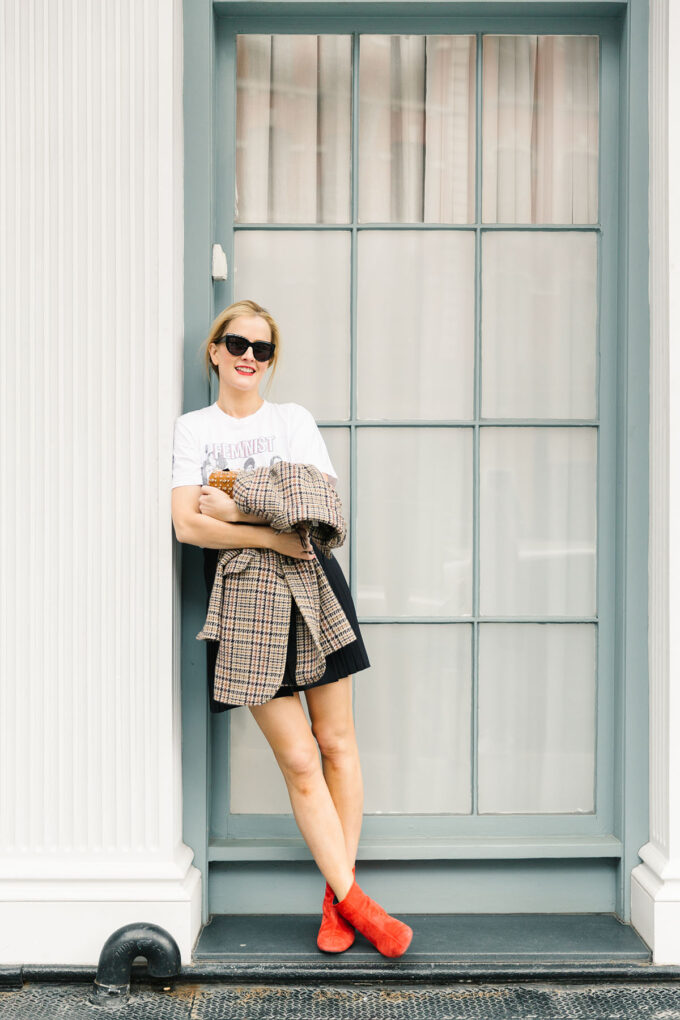 Coat: Zara, similar. T-shirt: Feminist Fight Club. Skirt: The Kooples. Boots: Topshop, similar.