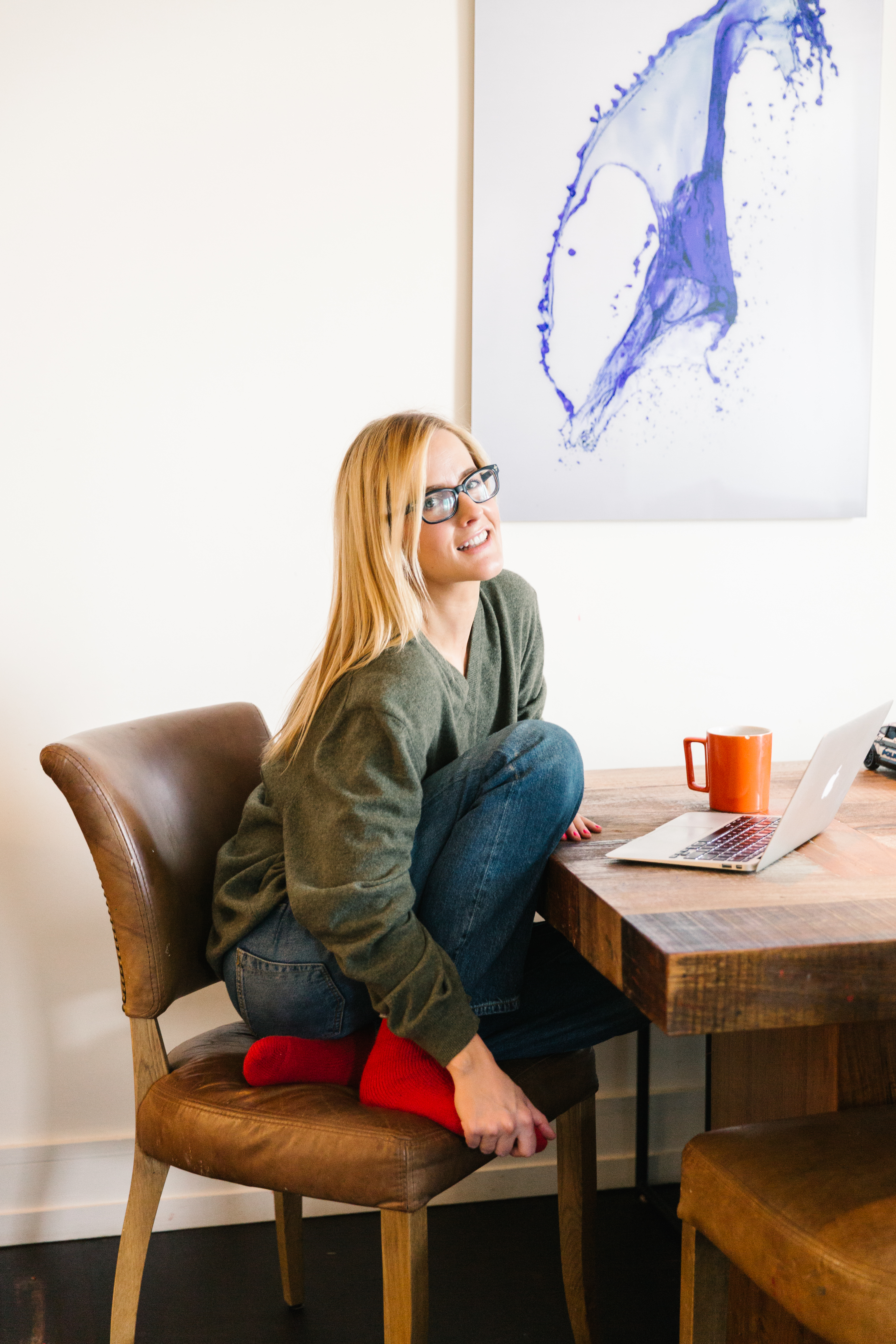 Sweater: Brooks Brothers. Jeans: Zara. Socks: Heat Holders.