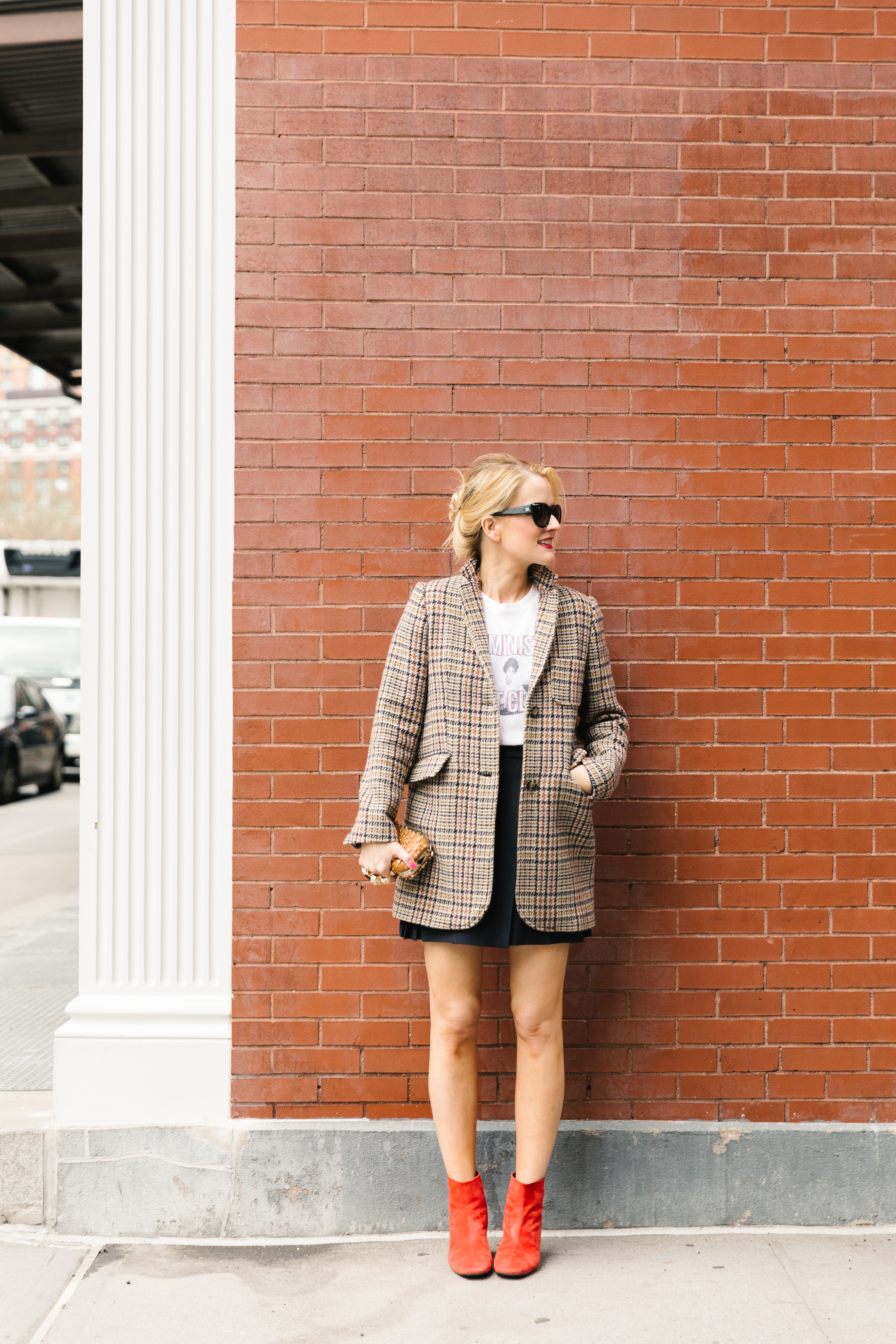 Coat: Zara, similar. T-shirt: Feminist Fight Club. Skirt: The Kooples. Boots: Topshop, similar.