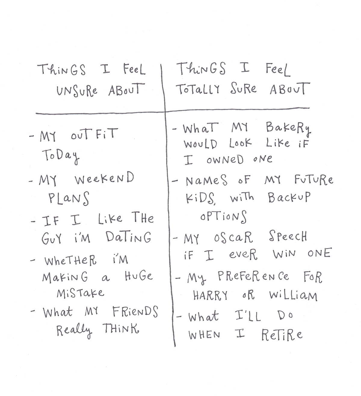 This is great, I love that we all have so much doubt in our heads! It makes me feel like I’m not the only one whose a pretend-adult!