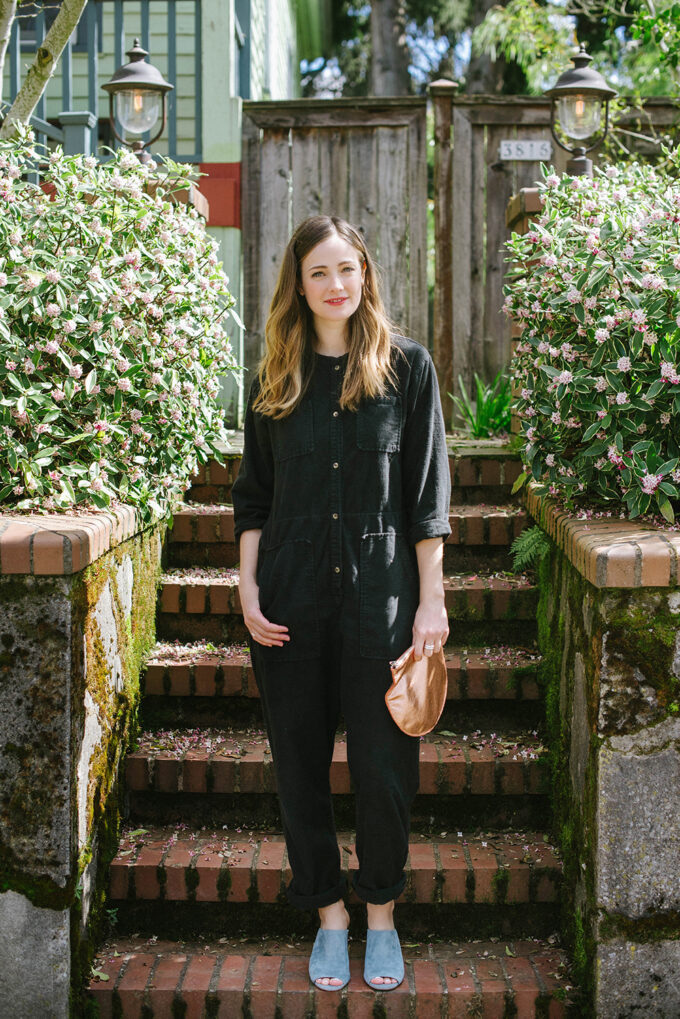 “Did you ever read that thing about how Obama wore the same suits every day because he had too many other decisions to make? I like to have a few things that make me feel good and not think about it. I have about a week’s worth of outfits because that’s how often I do laundry. I wore this jumpsuit twice a week all winter and all spring, and I’ll wear it all fall. It’s like a baby onesie, it’s so comfortable. When I first wore it, my husband and I met up for dinner, and he was like WHAT IS HAPPENING. But after the shock wears off, he thinks stuff like that is cute. There’s just this initial, okay, I need to readjust what I know about clothing and what people wear and now I can see, oh it’s actually pretty cool!”