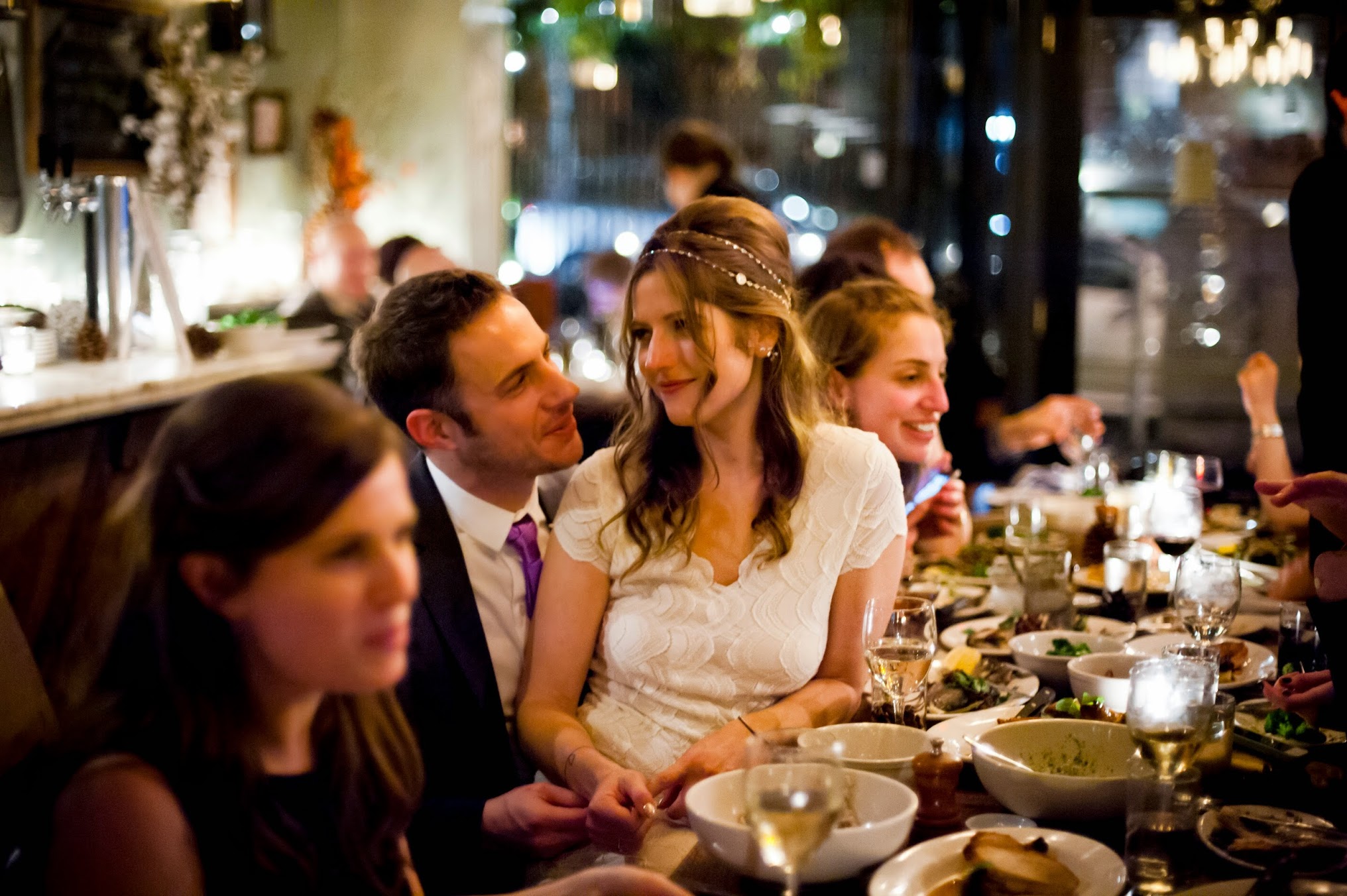 “My fiancé and I chose a couple things to focus on (food, music, etc.) and stuck with those, even if it meant sacrificing others. We wanted to be married at a magical restaurant we both love. Because we had a limited budget, it meant we could invite only a few friends each, plus our families. It was tough to not have everyone there, but after dinner, we hosted the rest of our friends at a nearby beer hall, and that was its own great thing. So, in the end, we had the best of all worlds.” — Colby (and Laura)