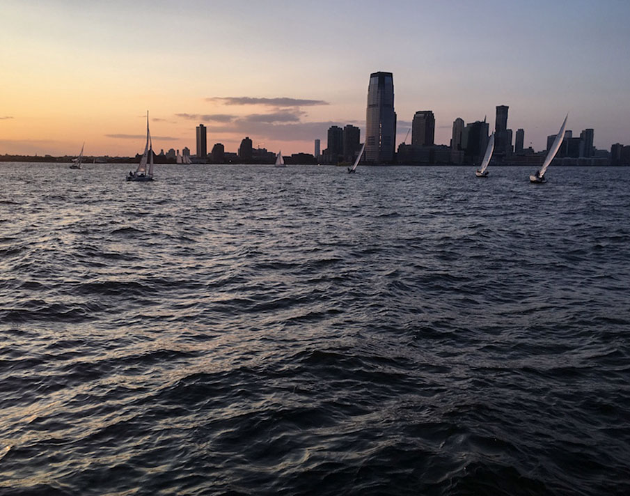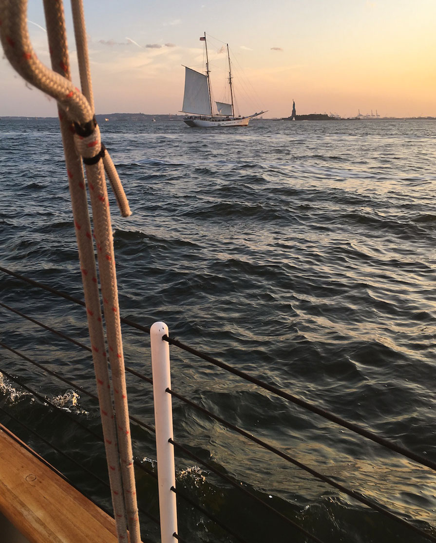 We’re going to our fancy dinner — all dressed up — next month because that’s when we could get a reservation. (NYC, man!) So, last night we went to Manhattan instead and took a schooner sail on the Hudson River. A million years ago, we got engaged on a sail, so it felt extra romantic to be out on the water.