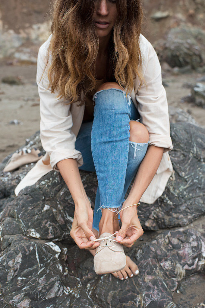 We collaborated with founder Georgia Hobart (nicknamed “Hobes” growing up) to choose two neutral colors and add stripes at the back of the shoe. It’s like a little wink, and looks so cute with a white tee, grey sweatshirt, jeans, whatever you’d like.