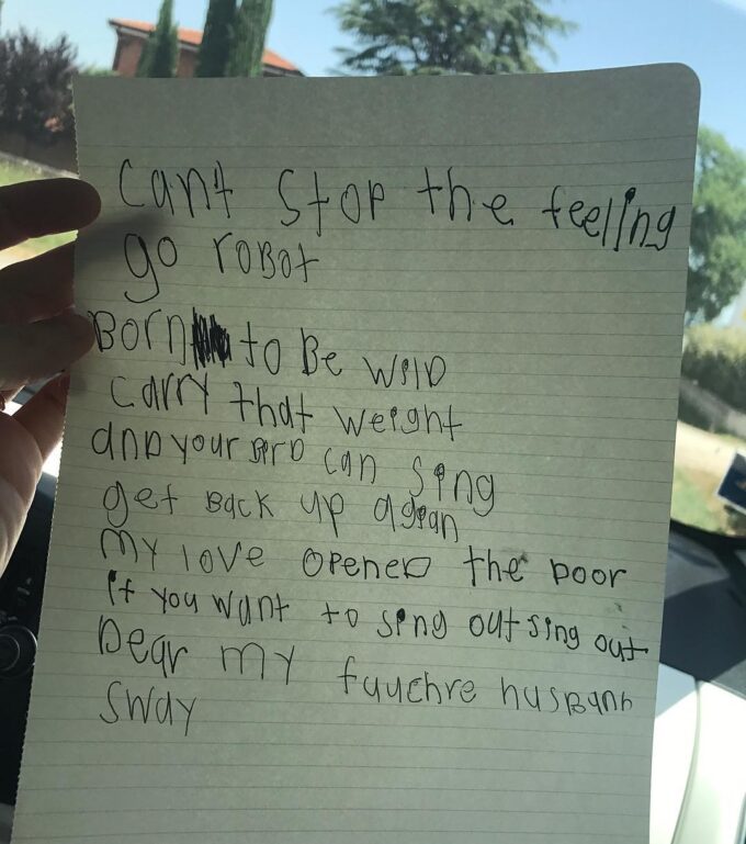 Whenever we drive somewhere, the boys make a playlist for the car. I’m actually really into their choices! Anton’s two favorite songs right now are Take On Me and My Love Open the Door. :)