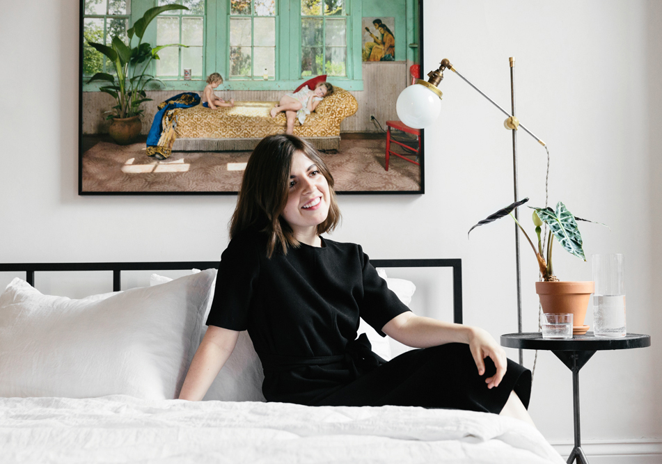 Art: Julie Blackmon. Bed: CB2. Bedding: Parachute. Floor lamp: Holler & Squall. Side table: found on street.